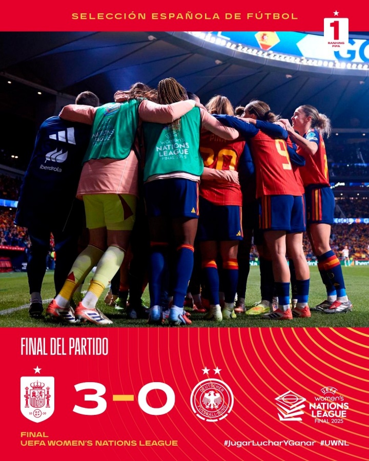 本场比赛,克劳迪娅·皮娜(梅开二度),维姬·洛佩兹锁定胜局(3-0),看护了西班牙在该项赛事中的霸主地位。