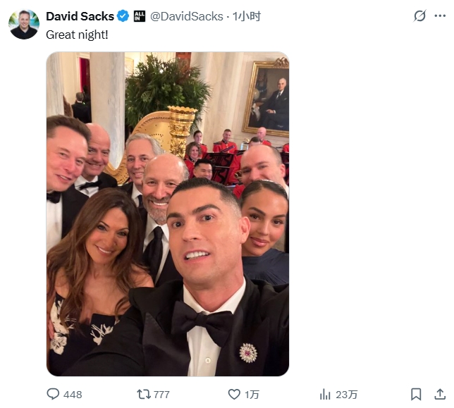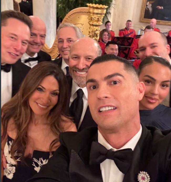 该图为C罗拿入部属手机自拍的视角,图中包括乔治娜、马斯克、因凡蒂诺等东谈主。之后马斯克还在该推特下指摘。