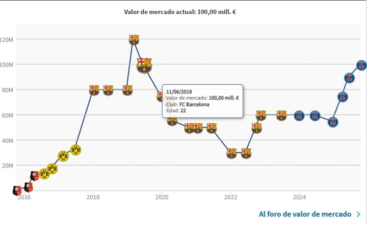 登贝莱身价最低时独一3000万欧,前次身价达到1亿欧元,还要回想到2019年遵循于巴萨手艺。