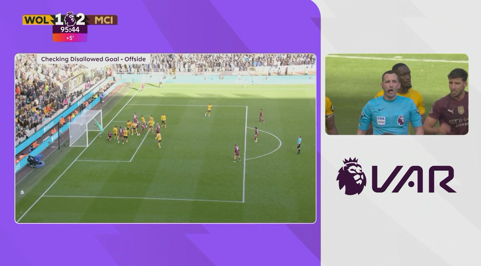 上赛季曼城2-1狼队,斯通斯补时绝杀,VAR介入判罚进球有用。