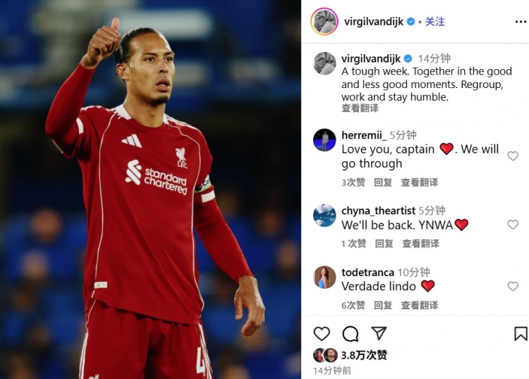 范迪克写说念:这是沉重的一周。无论顺境困境,咱们都合作在一都。重整旗饱读,竭力于责任,保合手慈爱。