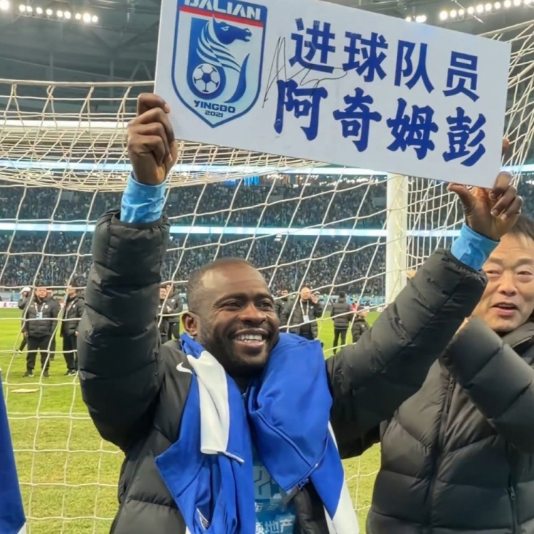 大连英博外援阿奇姆彭赛后秀中文:进球,非常好!
