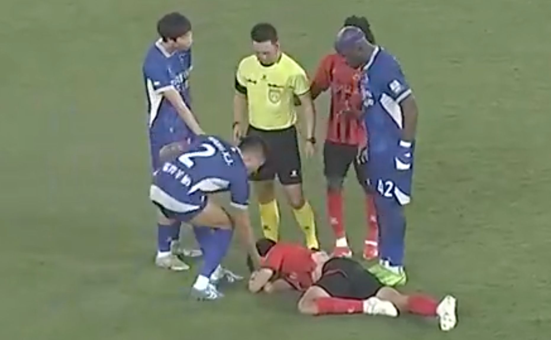 9月27日,中甲联赛第24轮,苏州东吴主场1-0打败了南京城市。第74分钟,场上出现争议。南京城市打反击,苏州东吴队29号球员陈骜犯规,防碍了敌手的反击。而在犯规后,该球员捂着脸倒在地上,莫得起来。